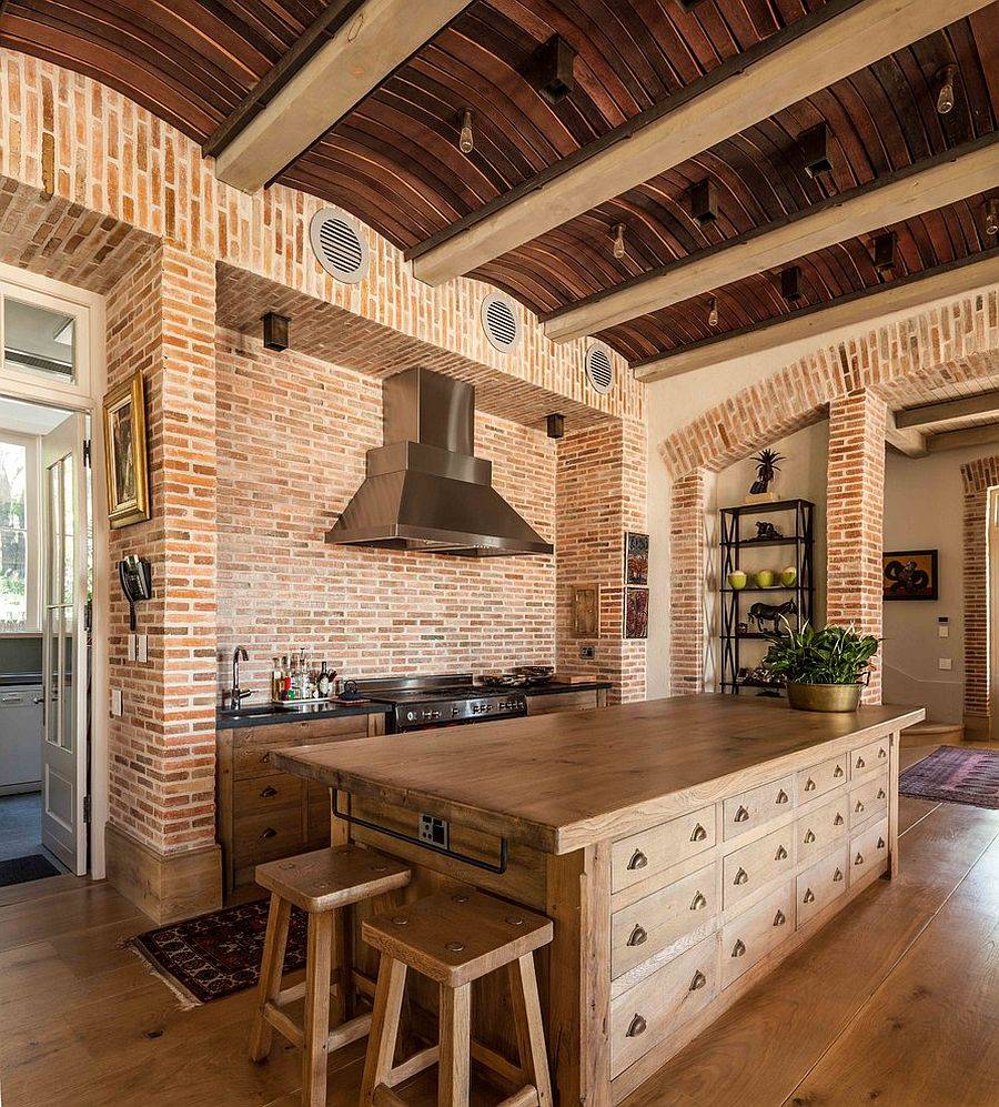 Элементы, присущие загородным домам, такие как деревянный потолок и кирпичные стены, превращают традиционную кухню в модное пространство, проект Wynand Wilsenach Architects