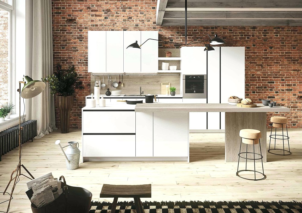 Светлый отделочный материал не будет перегружать оформление, как это может быть в случае с используемыми в избытке красными аналогами. Кухня из кирпича и дерева, выдержанная в светлых тонах, является интерьерной классикой, которая не только вписывается в уже упомянутые стили, но также может быть хорошим рецептом для деревенской или современной комнаты.