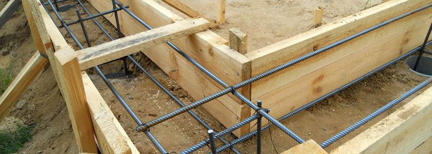Кладку фундамента армируют прутами, толщина составляет 0,1 сантиметр, и устанавливают на расстоянии 150 сантиметров. Полученный каркас крепится проволокой и после опускается в опалубку.