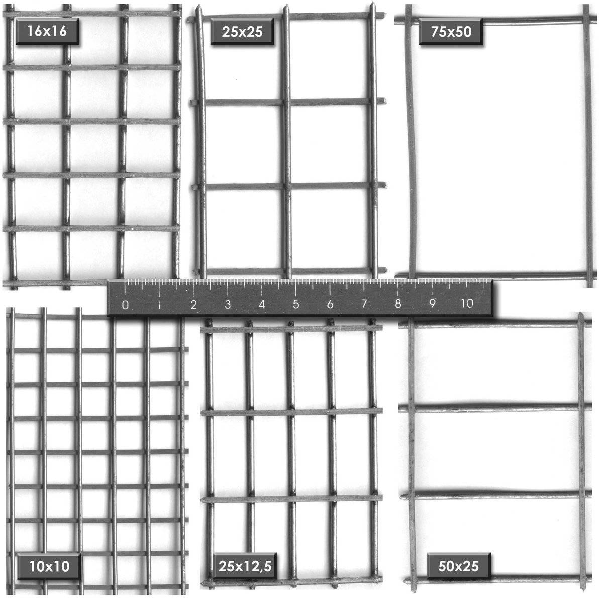Исходный материал – рифлёная проволока ВР-1 согласно ГОСТ 6727-80 и гладкая проволока В-1 по ГОСТ 3282-86. Размер ячейки – это расстояние между рядом расположенными проволоками основы либо прутка. Изделия разных производителей различаются, как правило, лишь по размеру ячеек. Диапазон наиболее распространённых параметров ячейки: 5х5 мм – 45х45 мм.