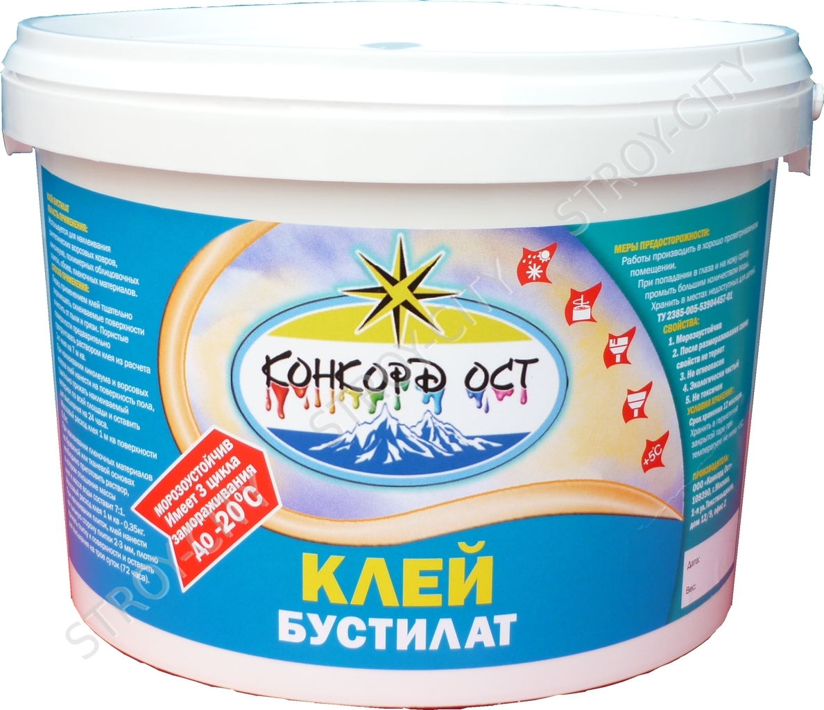 «Бустилат-М» — это морозостойкий клей, которые прекрасно подходит для приклеивания синтетических ковровых покрытий, тяжелых обоев, облицовочной плитки, линолеума, а также может с успехом использоваться в качестве грунтовки.