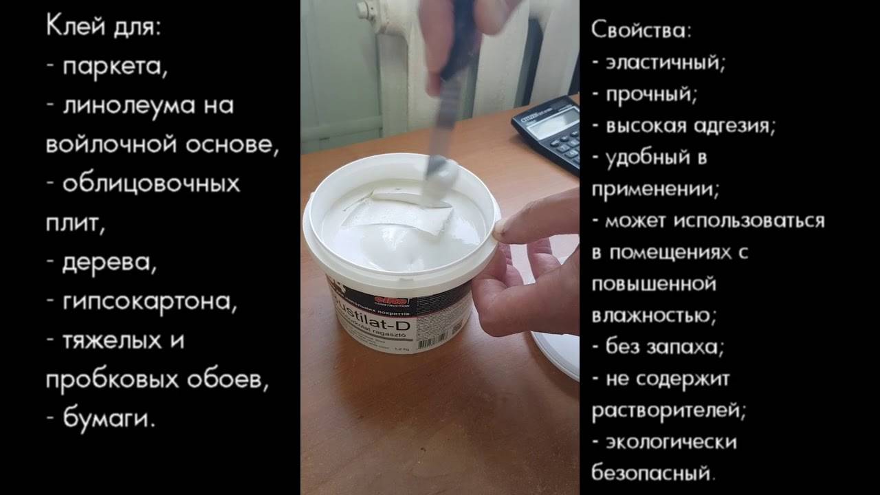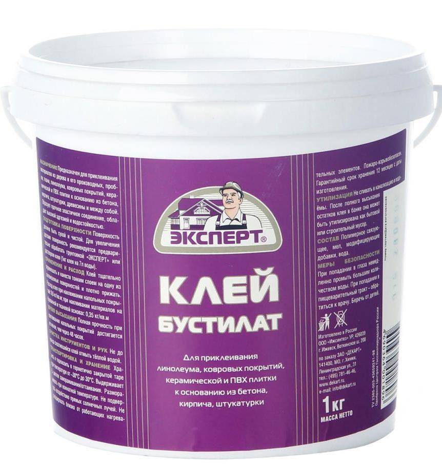 Чаще всего применяется клей Бустилат для линолеума и обоев. С учетом особенностей эксплуатационных характеристик, перед применением необходимо: