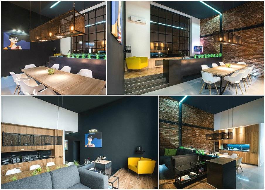 Зато чёрный потолок станет прекрасным дизайнерским решением в индустриальном или лофт интерьере. Брутальность этих стилей притягивает грубые и достаточно «жёсткие» материалы, цвета и фактуры. Чёрный потолок прекрасно смотрится в современном стиле.