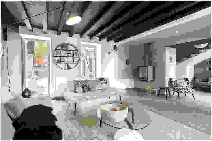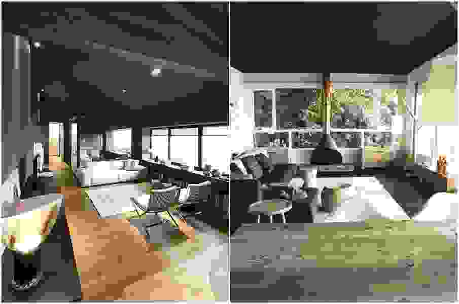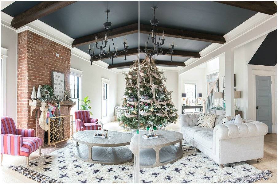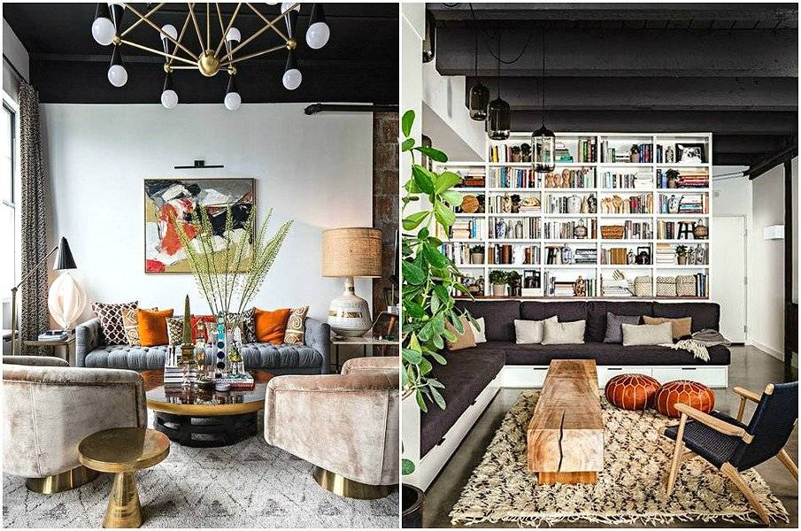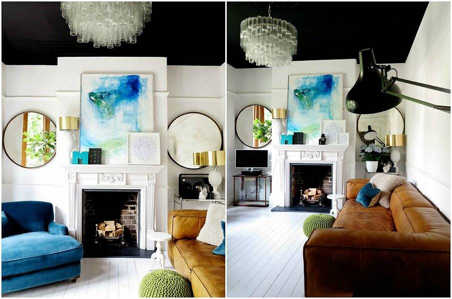 Чёрный потолок совершенно не портит атмосферу уютной гостиной