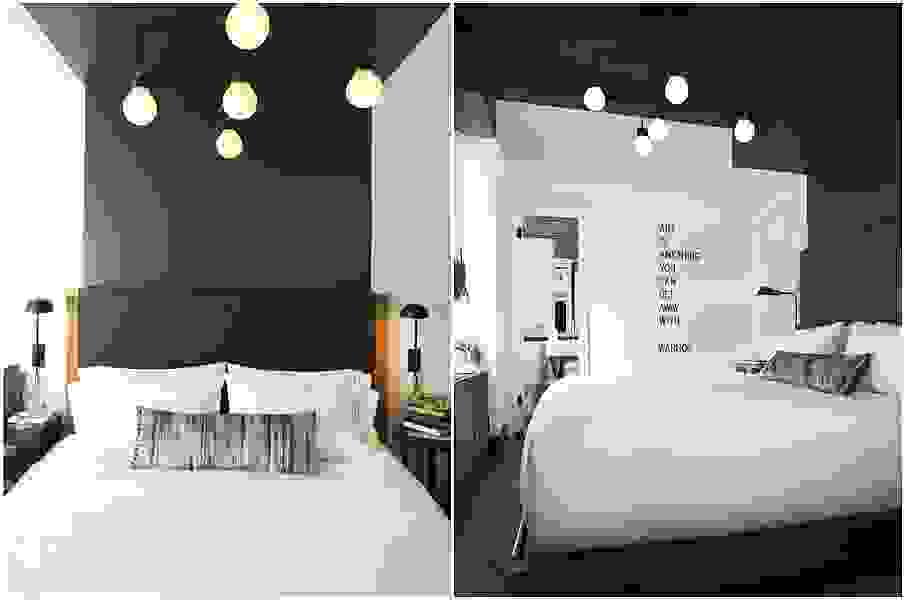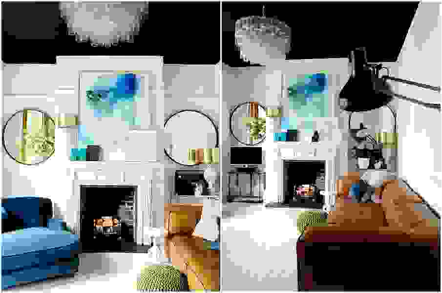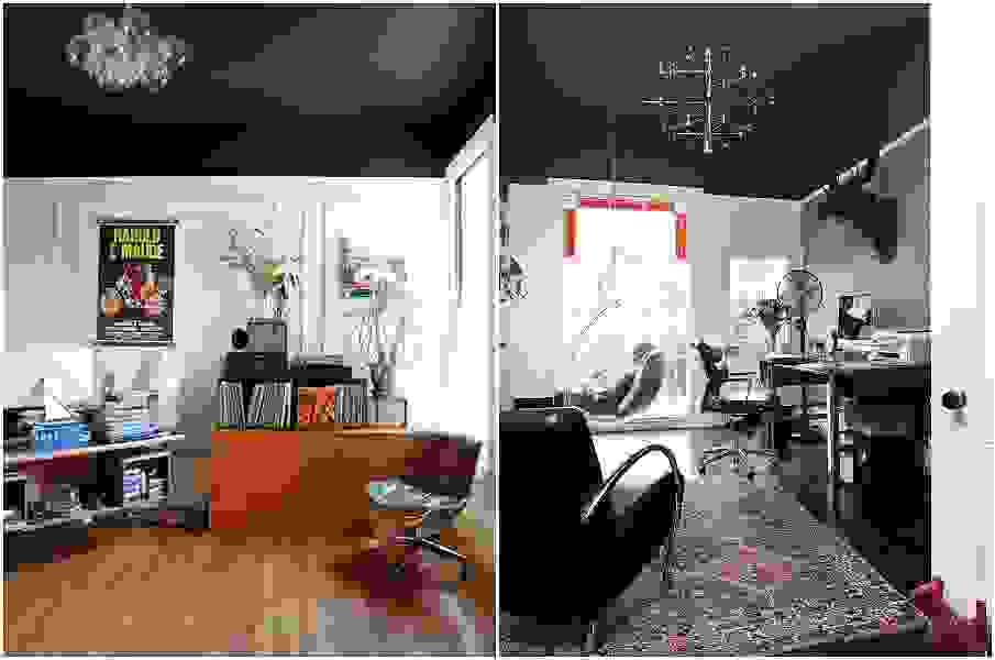Яркие аксессуары сглаживают излишнюю строгость чёрного потолка