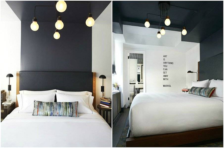 Буйство красок таких направлений, как поп-арт или китч прекрасно оттеняется чёрным потолком