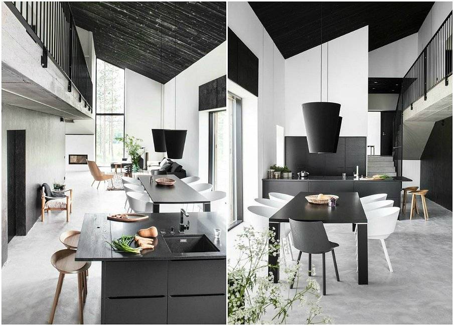 Он органично вписывается в такие направления, как сканди и минимализм. Классическая комбинация для этих стилей – сочетание чёрного и белого. Причём даже такой аскетичный цветовой дуэт может создавать домашнюю и уютную атмосферу. Главное знать, как и в каких пропорциях сочетать эти оттенки.