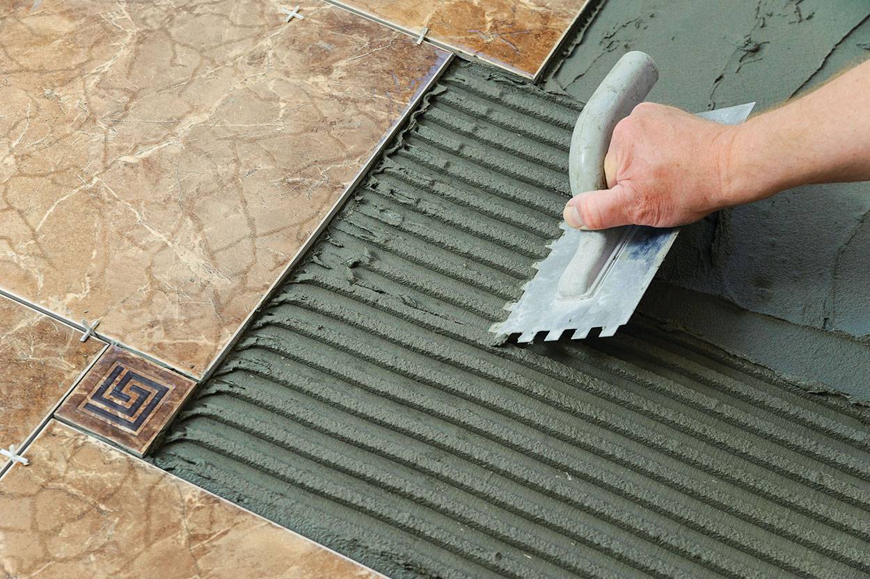 Разведённую массу стоит оставить в покое на какое-то время, чтобы она настоялась. Затем её надо перемешать до однородного состояния. Для нанесения лучше взять зубчатый шпатель. 20% поверхности плитки должно оставаться свободным.
