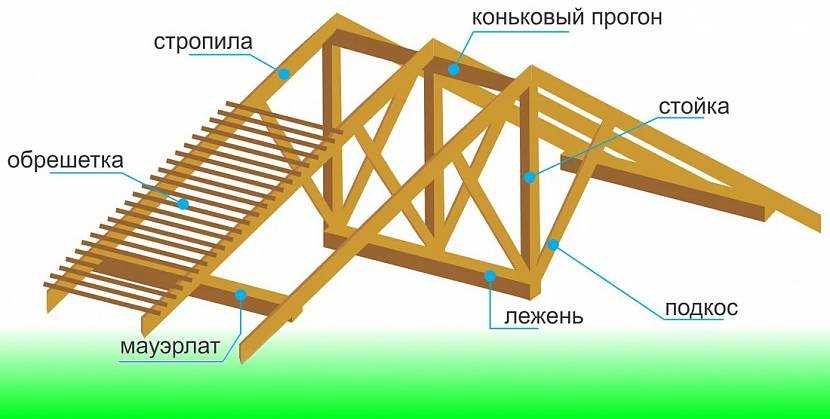 Чтобы делать все осознанно, необходимо разобраться со строением двускатной кровли и назначением всех ее элементов. Начнем по порядку.