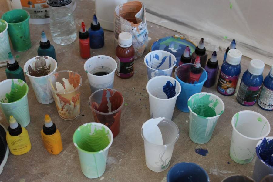 Приготовим себе рабочий уголок — застелем пол, если на нем уже имеется финишное покрытие, так как краску лучше всего разводить именно в том помещении, для которого и подбирается оттенок;