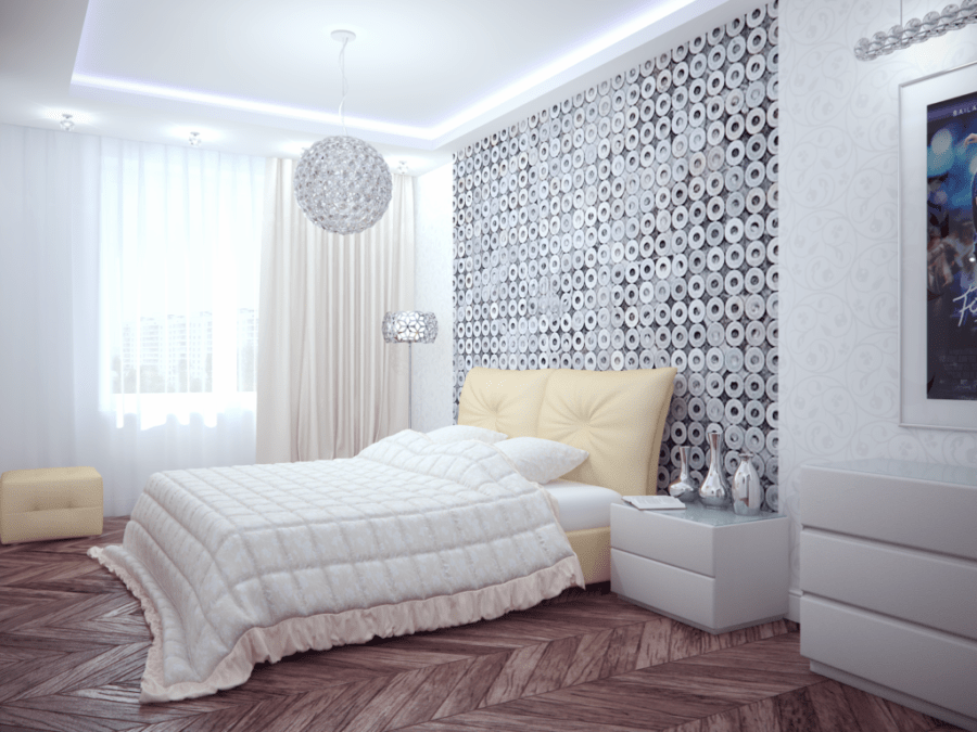 Винил выбирайте в случае, если будете его сочетать с другими полотнами. Для спальни в едином варианте он вряд ли подойдет. Блеск полотна, дополнительная фактура и прочие особенности в полном исполнении окажутся вычурными и излишними.