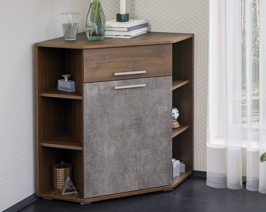 Угловые модели – лучшее решение для квартир и домов с ограниченной площадью, так как они позволяют сэкономить пространство. Угловые комоды могут быть самой разной ширины и различаться по форме, главное, выбрать вариант, который хорошо впишется в ваш интерьер. Особенности угловых комодов: