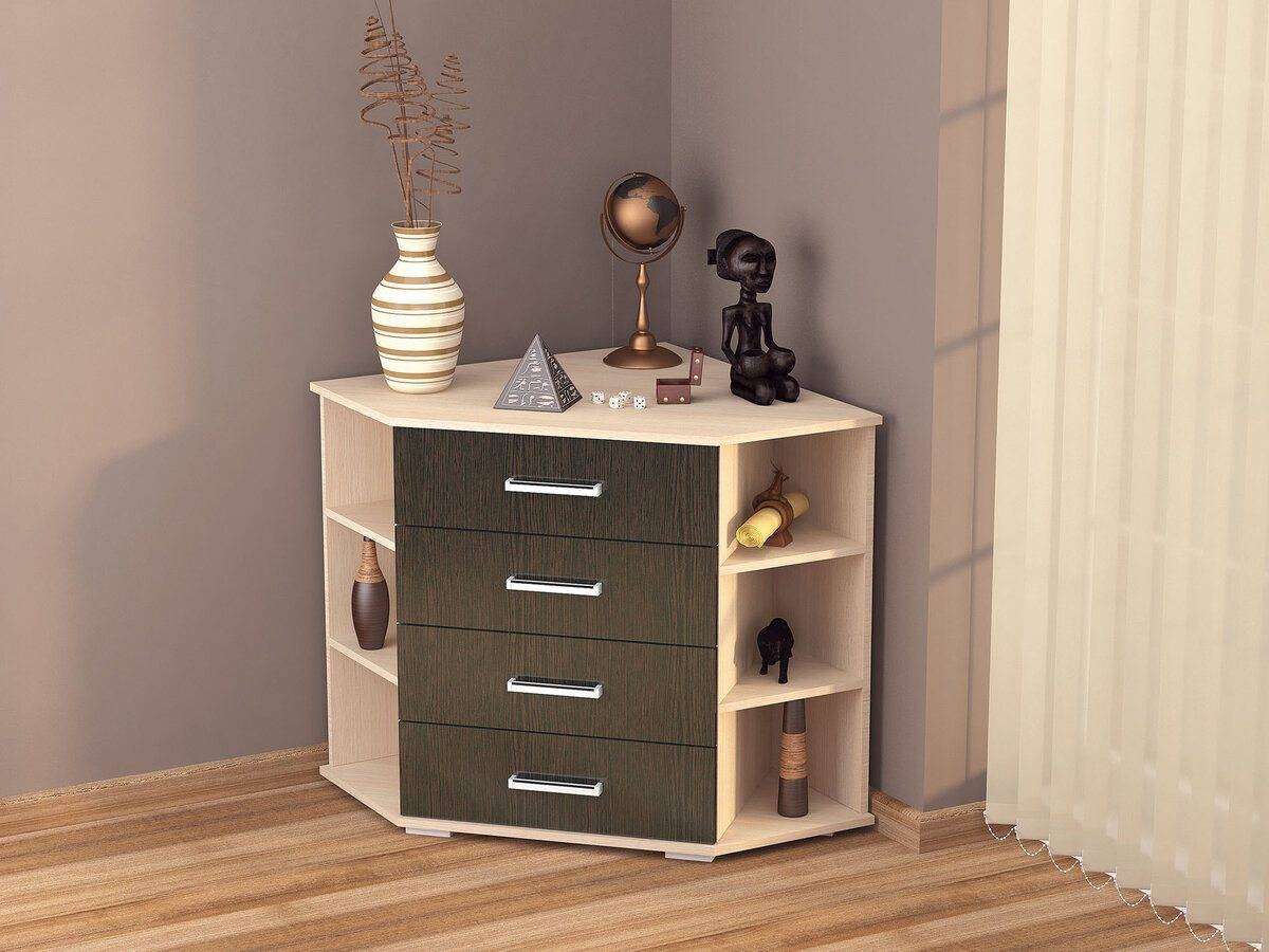 Угловой комод в спальню, на фото изделие в двухцветном исполнении