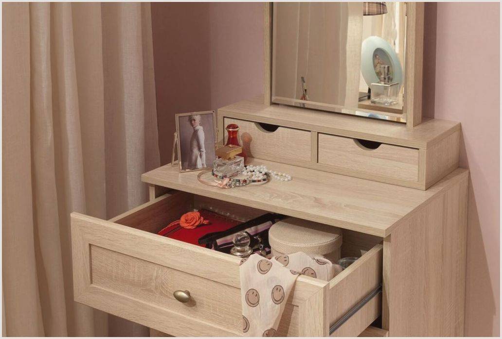 Зачастую комод имеет несколько выдвижных ящиков, которые могут быть одинаковыми или разными по размеру. Удобными для спальной комнаты будут модели, у которых верхние два ящика имеют стандартную высоту, а еще два более вместительны. Тогда в первых практично хранить белье, мелкого размера аксессуары, а во вторых – пастельное, подушки и так далее. Еще одним удобным вариантом выступают маленькие ящички, которые приспособлены для хранения документов, косметики, украшений.