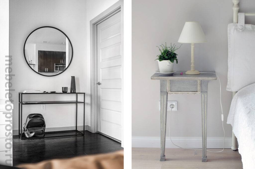 Благодаря своим компактным размерам, такой предмет интерьера особенно хорошо подойдет для небольших помещений. Например, для прихожей. Здесь консольный столик будет прекрасно сочетаться с зеркалом. Такая зона у входа не займет много места, но очень украсит помещение. А для спальни консоль может сыграть роль туалетного столика или прикроватной тумбы.