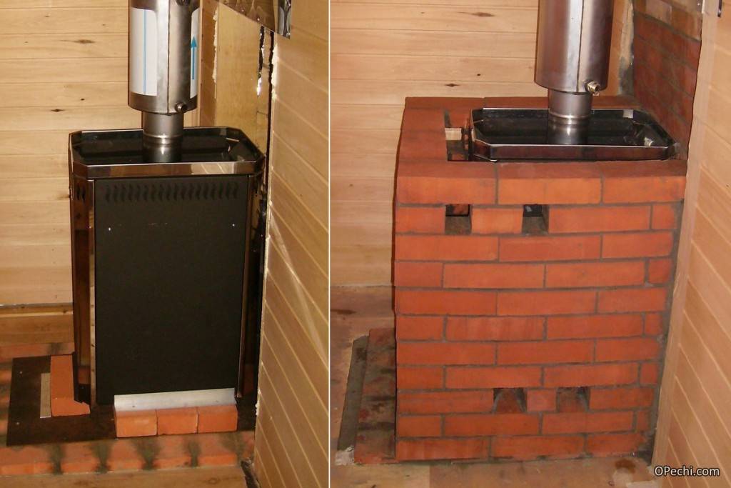 В данном случае котел для сауны или бани будет наиболее простым в установке и безопасным. Он может обойтись без дымохода и нужно сравнительно небольшое место для установки. Нагрев осуществляется с помощью ТЭНа. В качестве недостатков можно отметить высокую стоимость электричества, а также необходимость монтажа отдельной проводки для обеспечения защиты от замыкания.