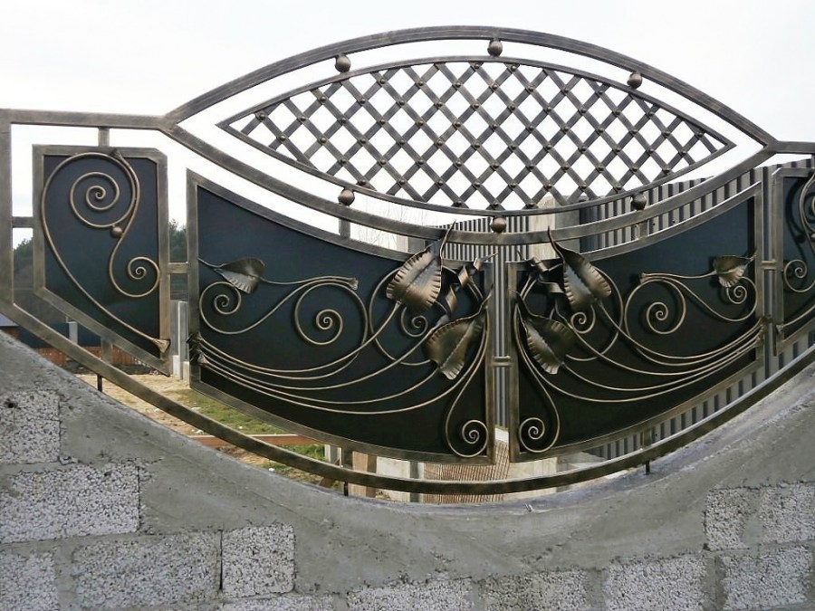 Комбинированные изделия совмещают в себе характеристики первых двух разновидностей. Основой такого ограждения служат стандартизированные элементы, выполненные с помощью штамповки. Художественные кованые элементы используются только в тех частях ограждения, которые подходят для этого больше всего.
