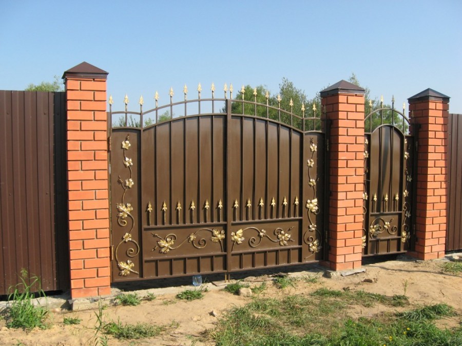 При изготовлении ворот или калитки используются элементы с нестандартной формой. При большом количестве секций их соединяют хомутами или закладками. Иногда крепление элементов происходит при помощи сварки. В интернете найдется множество фото с разными рисунками. Профессиональные мастера подскажут, как лучше сочетать орнамент.