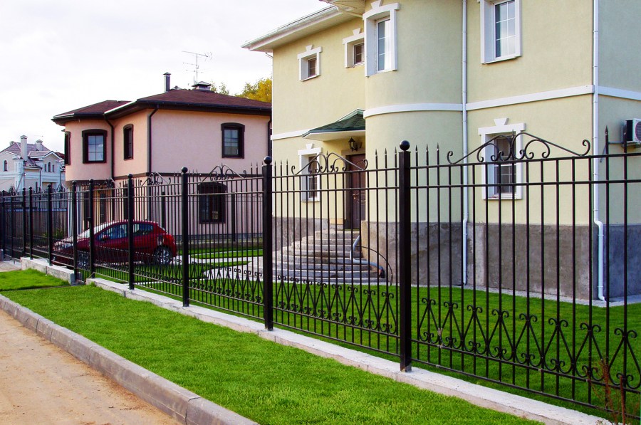 - Безусловно, высокая степень безопасности придомовой территории. Это преимущество обеспечивают прочные прутья и многочисленные острые наконечники, которыми принято декорировать ограждение.