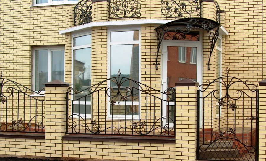 Большой популярностью пользуются ограждения, которые устанавливаются на кирпичные опоры. Сочетание кирпича с коваными прутьями выглядит эффектно и основательно.