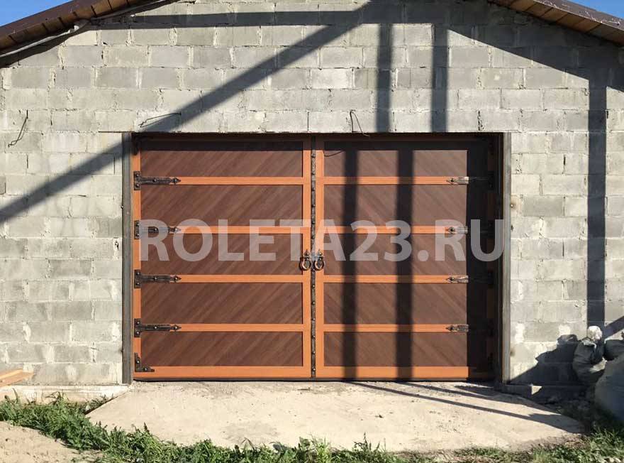 - Внешняя сторона ворот может быть обработана морилкой, для видимого состаривания поверхности и придания ей более темного цвета.
