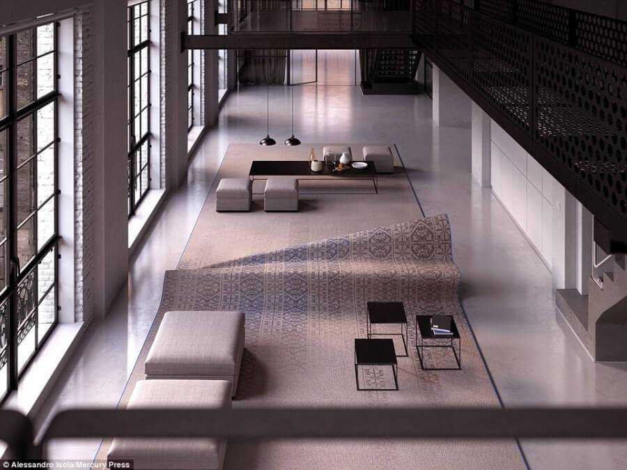 У современного дизайнера Алессандро Изола (Alessandro Isola) весьма оригинальный взгляд на использование ковров в интерьере современной гостиной. Что, впрочем, неудивительно. Все, что делает этот человек, пронизано особым стилем и почерком, выражающим его яркую индивидуальность.
