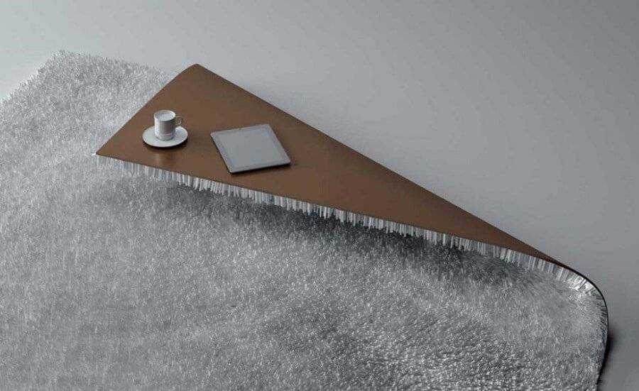 Он разработал ковер, одновременно являющийся журнальным столиком. Всего лишь загнул и закрепил угол. Можно класть книжки, поставить бутылку вина или бережно опустить чашку горячего кофе.