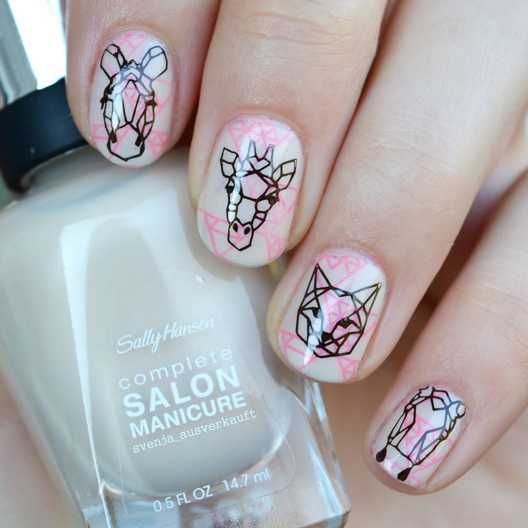 На сегодняшний день дизайн в стиле геометрии считается самым популярным и востребованным. Даже изображения животных модно в наше время рисовать в данном направлении. Геометрический стиль подразумевает под собой выполнение рисунка при помощи точек и линий. Для более упрощённого варианта нанесения орнамента мастера используют готовые слайдеры и стемпинги. Ну, а для любителей собственноручно выполнять орнамент, геометрический рисунок не составит сложностей. Геометрические животные довольно часто создаются в ахроматической цветовой гамме. При нанесении данного дизайна самое главное правильно подобрать нужные оттенки и аккуратно наносить линии рисунка, чтобы силуэт животного был заметен.