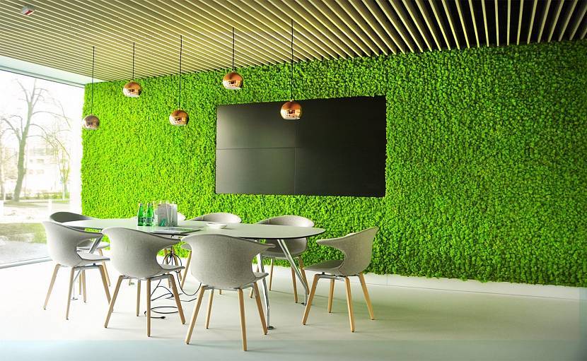 Дизайнеры предлагают поселить мох в ширмах, полках и стеллажах, на столике, торшере, люстре или просто на стене, полу. Сорт используемого мха практически не нуждается в специальном уходе. Мебель с растениями нет необходимости поливать или удобрять, нужно лишь следить, чтобы влажность воздуха в помещении не опускалась ниже 50%, а на мох не попадал постоянно прямой солнечный свет. Это дает владельцам затененного жилья прекрасный шанс все же пышно озеленить и оживить интерьер.