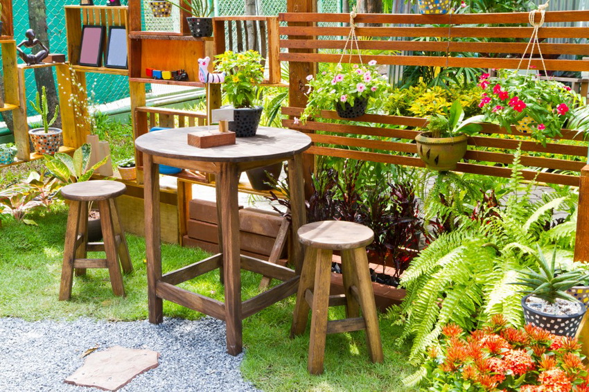 - в саду уместнее будет смотреться мебель из дерева;