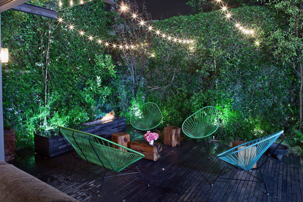 Если окружающая местность патио на даче ничем не занята, можно разместить там оригинальные осветительные приборы, либо декоративные кусты.