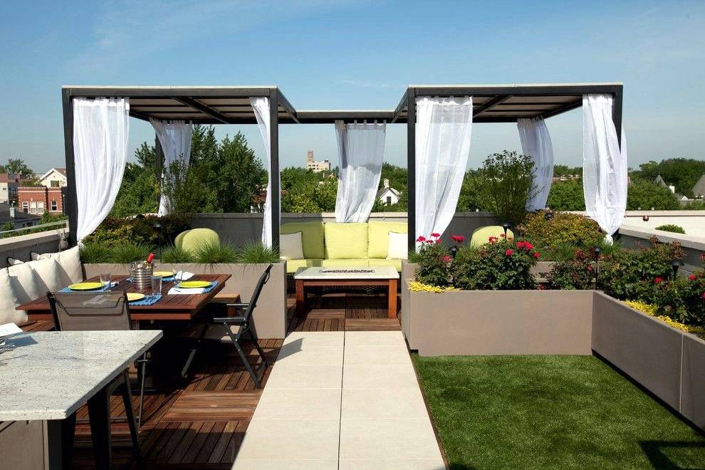 Патио на плоской крыше выглядит изысканно, но до начала его обустройства следует убедиться в надежности и прочности фундамента, на который возлагается дополнительная нагрузка. Провести расчеты самостоятельно вряд ли получится, поэтому понадобится консультация специалистов. То же самое касается при обустройстве патио на балконе. Одно дело, когда планируется исключительно установка легкой мебели, и совсем иной подход требуется при размещении тяжелых вазонов с грунтом в качестве озеленения.
