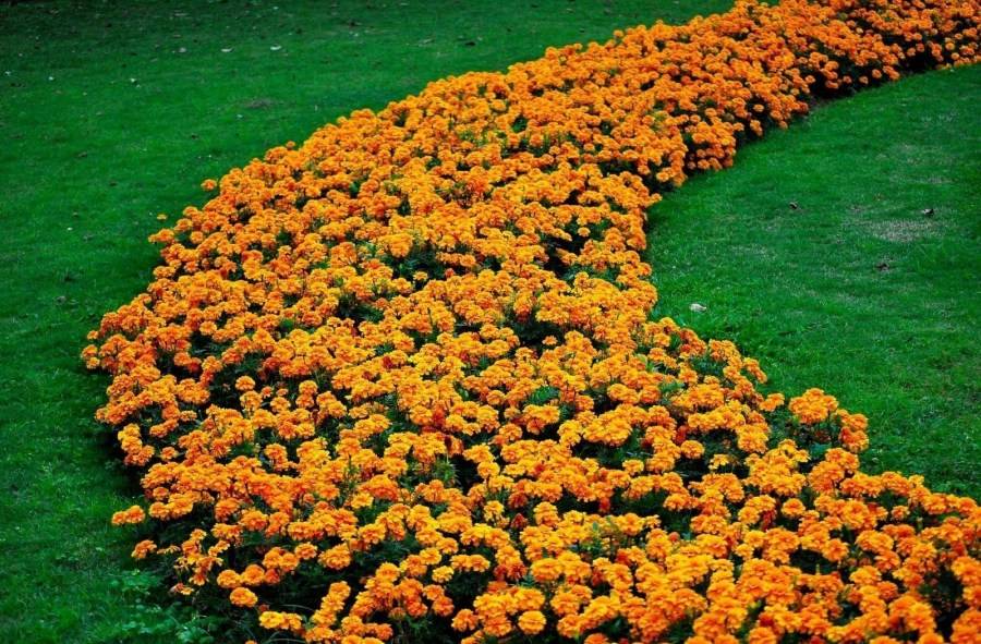 — что касается плотности посадки растений, то по краям цветы сажаются более плотно, а при движении к центру клумбы между каждым растением стоит оставлять все большее расстояние.
