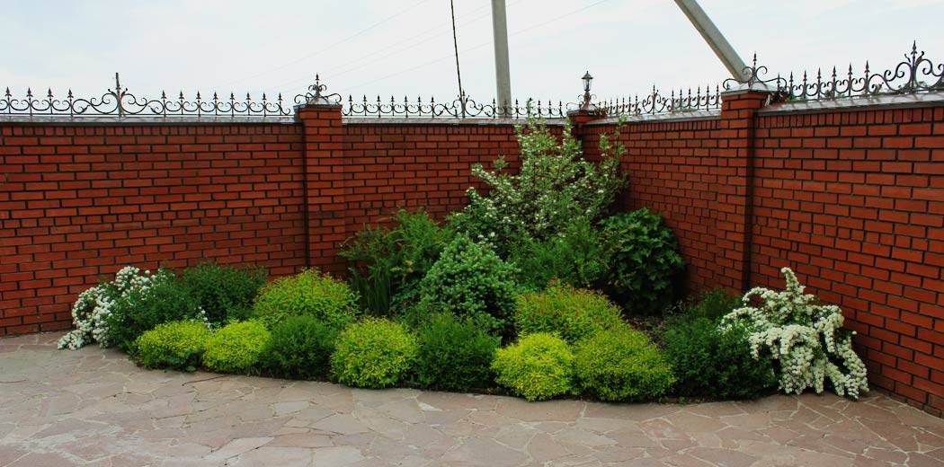 Даже ажурная изгородь, выстроенная из кирпича, а тем более грубовато-нарочитое каменное сооружение предполагают использование под ними только растений, привычных к тени. На узкой полоске под таким ограждением привычно остается только неприхотливая дорожка газонной травы или чахлые кустики камнеломки.