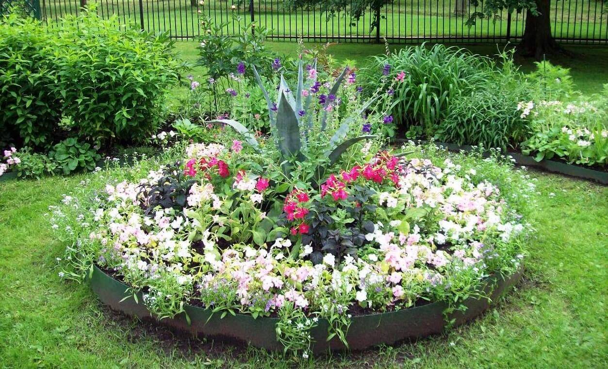 Подходящая для новичков идея клумбы в виде островка легка в исполнении и в последующем уходе.