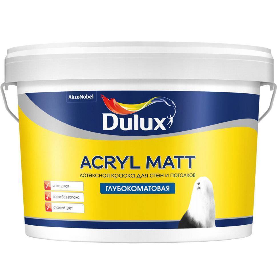 Водная краска для стен и потолка Dulux состоит из латексных и акриловых полимеров, которые воздействуют на прочность, влагоустойчивость и влияние перепадов температур.