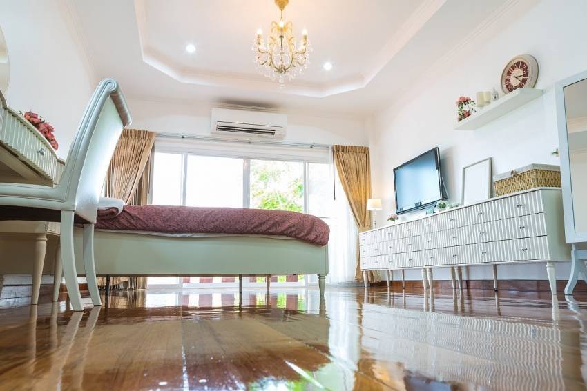 Краска на основе силикона не выгорает на солнце, поэтому ее можно использовать для потолка в комнате с большими панорамными окнами