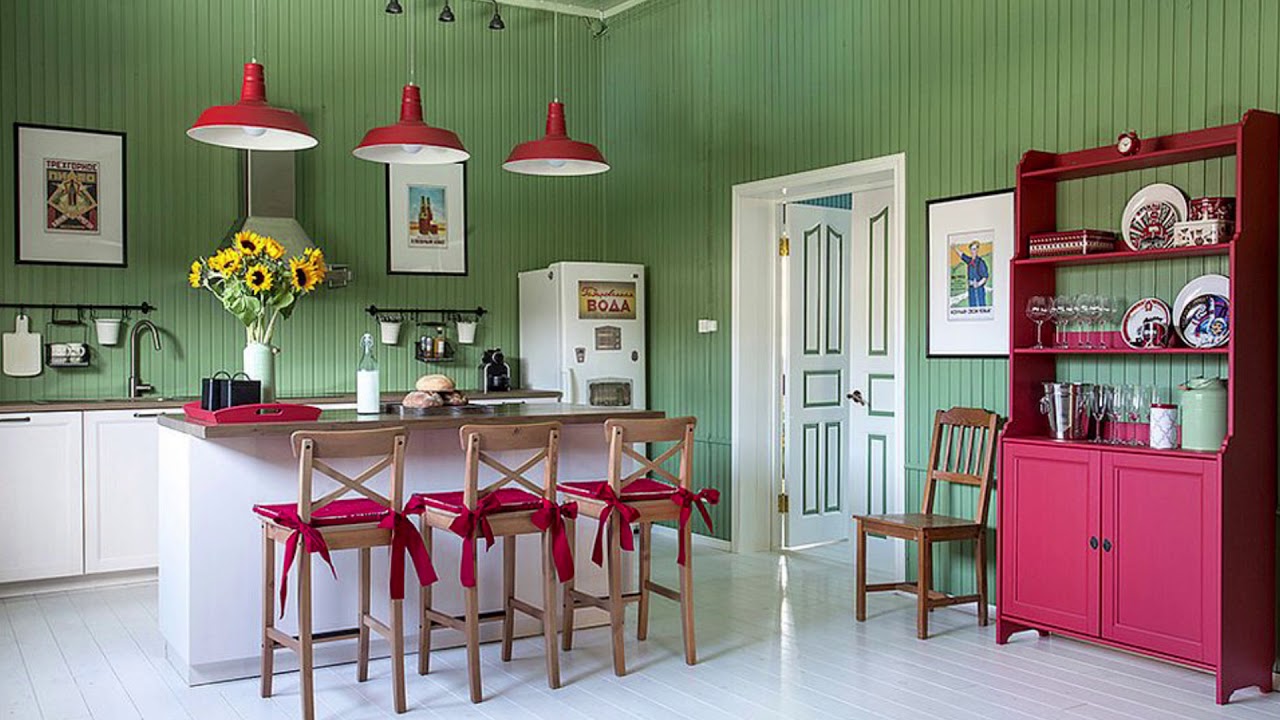 покрасить кухню в жёлтый или светло-зеленый цвет.