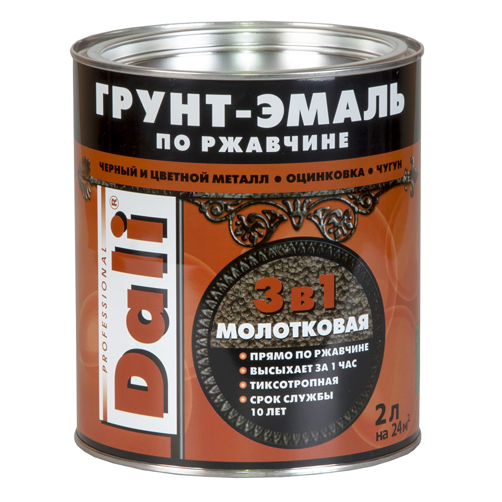 Молотковые краски для фасадных работ по металлу обеспечивают прочное, эстетическое привлекательное и долговечное покрытие. После высыхания трехкомпонентный состав создает оригинальную фактуру поверхности, которая похожа на кузнечную чеканку. Не требует предварительного применения грунтовки, других базовых покрытий. Помогает скрыть незначительные дефекты и неровности на поверхности металла.