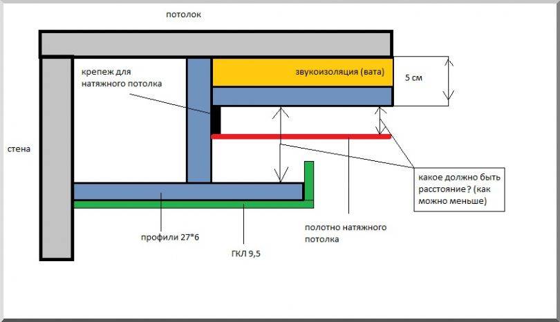 Как проводится крепление натяжного потолка к стене из гипсокартона