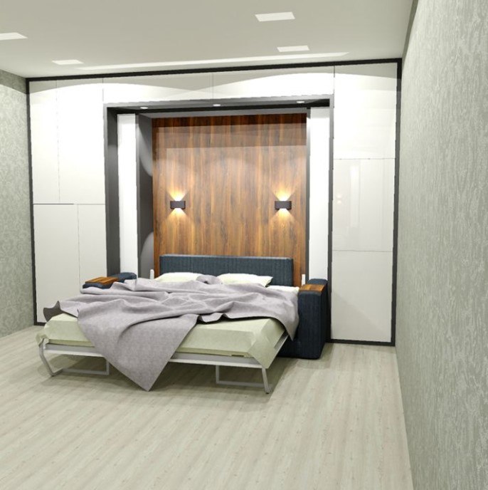 - Кровать-стол — уникальный вариант для небольших студий, где каждая деталь важна.