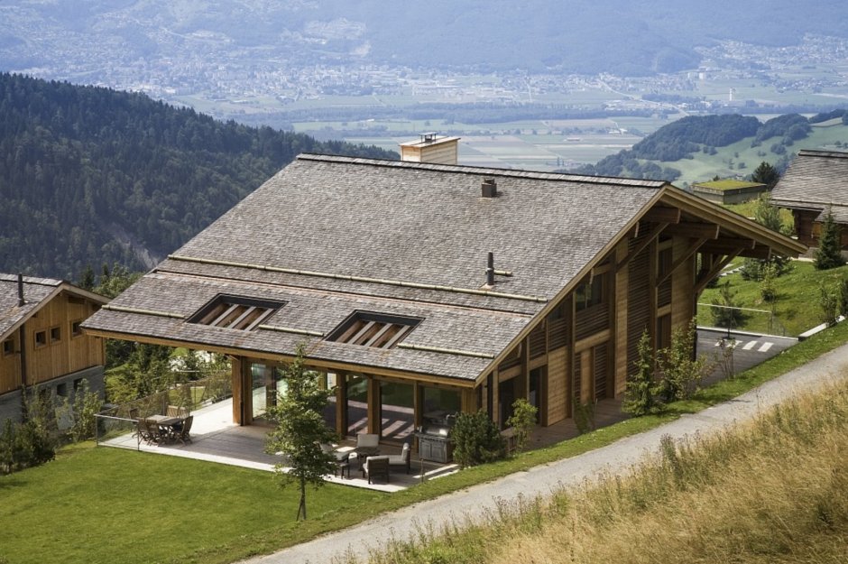 Тип домов с крышей шале распространен в горных районах Швейцарии, Германии и Австрии.
