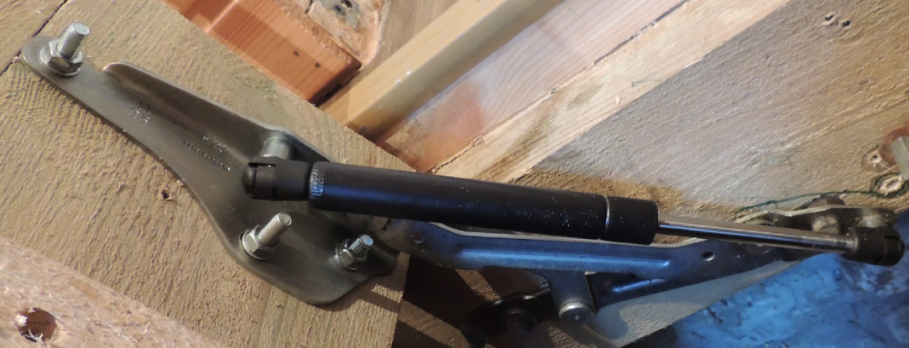 К изготовленному ранее деревянному, металлическому или комбинированному люку приделывают газовый амортизатор, чтобы удобно было спускаться и опускаться в погреб. Плавный ход дверцы и фиксация ее делают эксплуатацию люка удобной. Амортизаторы подбирают исходя из получившегося веса дверки. Способ установки: