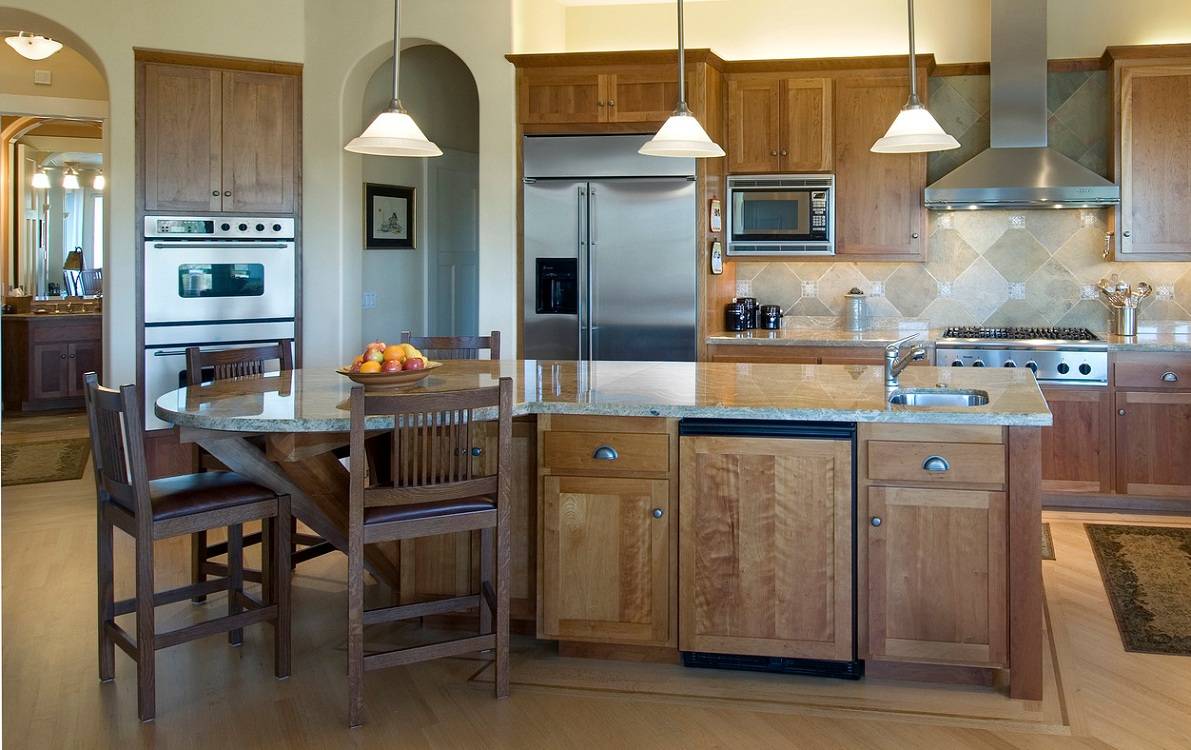 Деревянный кухонный остров подойдет для классической кухни или кухни в стиле кантри.