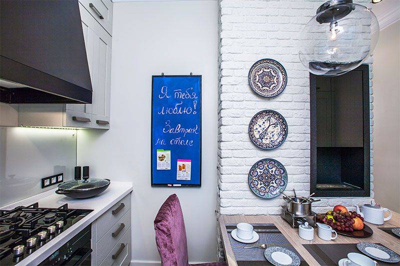 - Грифельная доска. Подойдет для современного дизайна. Помогает создать ключевой акцент в комнате.