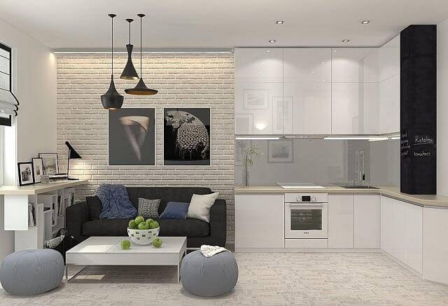 Дополнительным решением дизайна может стать оформление в виде барной стойки или камина. Они не только маскируют интерьер, но и вносят в него домашний уют и определенную стилистическую направленность в облагораживании интерьера.