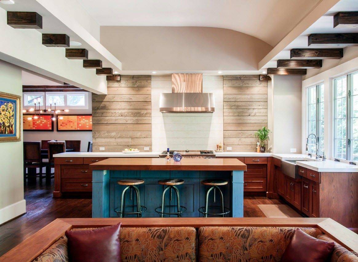 Это своеобразный и уникальный стиль идеален для совмещенной кухни-гостиной загородного особняка.