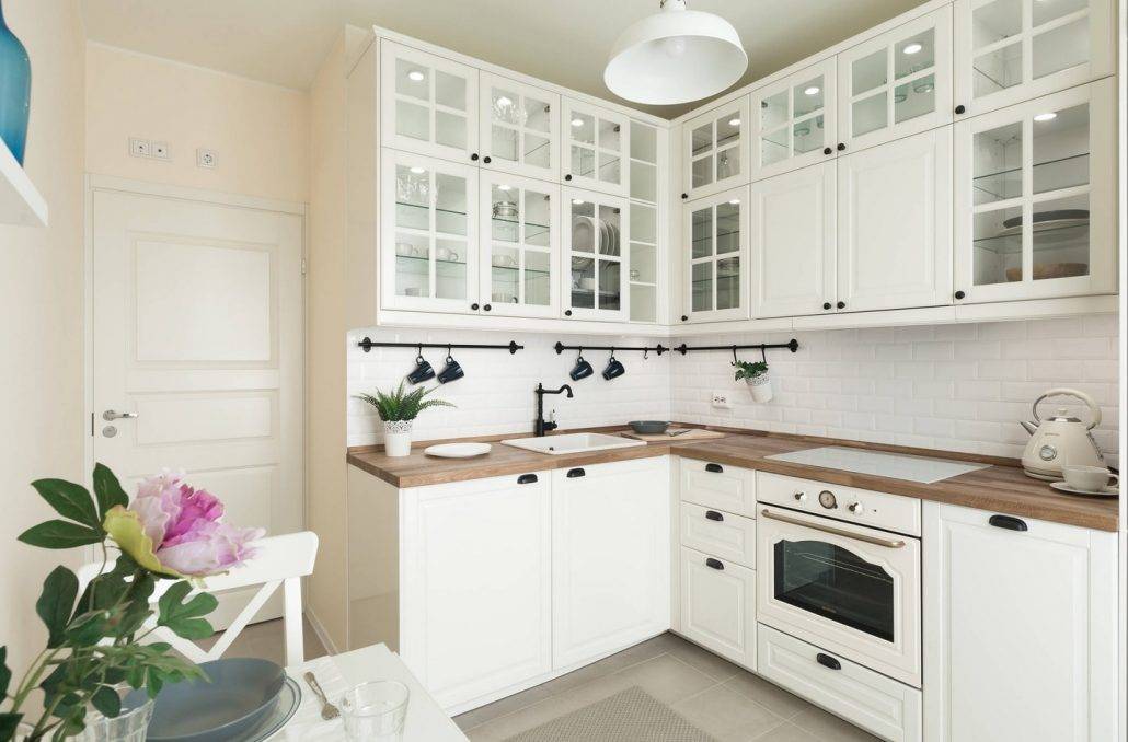 Не менее важно правильно подобрать оттенок гарнитура. Для небольшого помещения подойдут бежевый, белый и вся гамма пастельных тонов