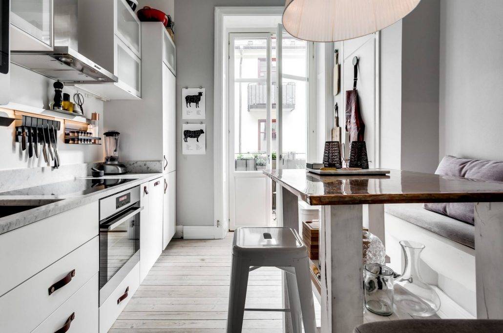 Обеденный стол в интерьере маленькой кухни должен находится