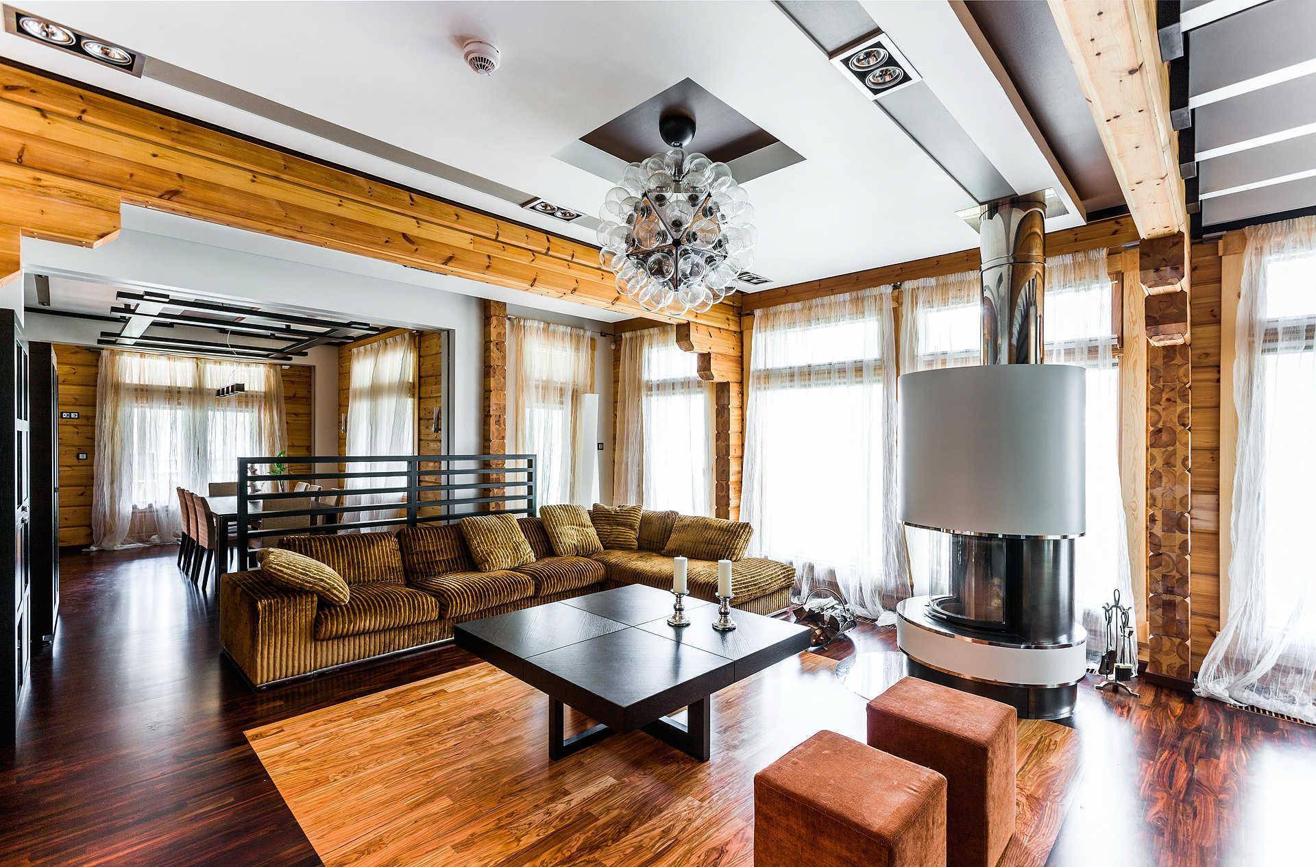 Планировка с высокими потолками визуально расширяет пространство, поэтому у владельцев второго света в деревянном доме возникает ощущение просторной жилплощади даже в случаях, когда общая территория не превышает 150 квадратных метров.